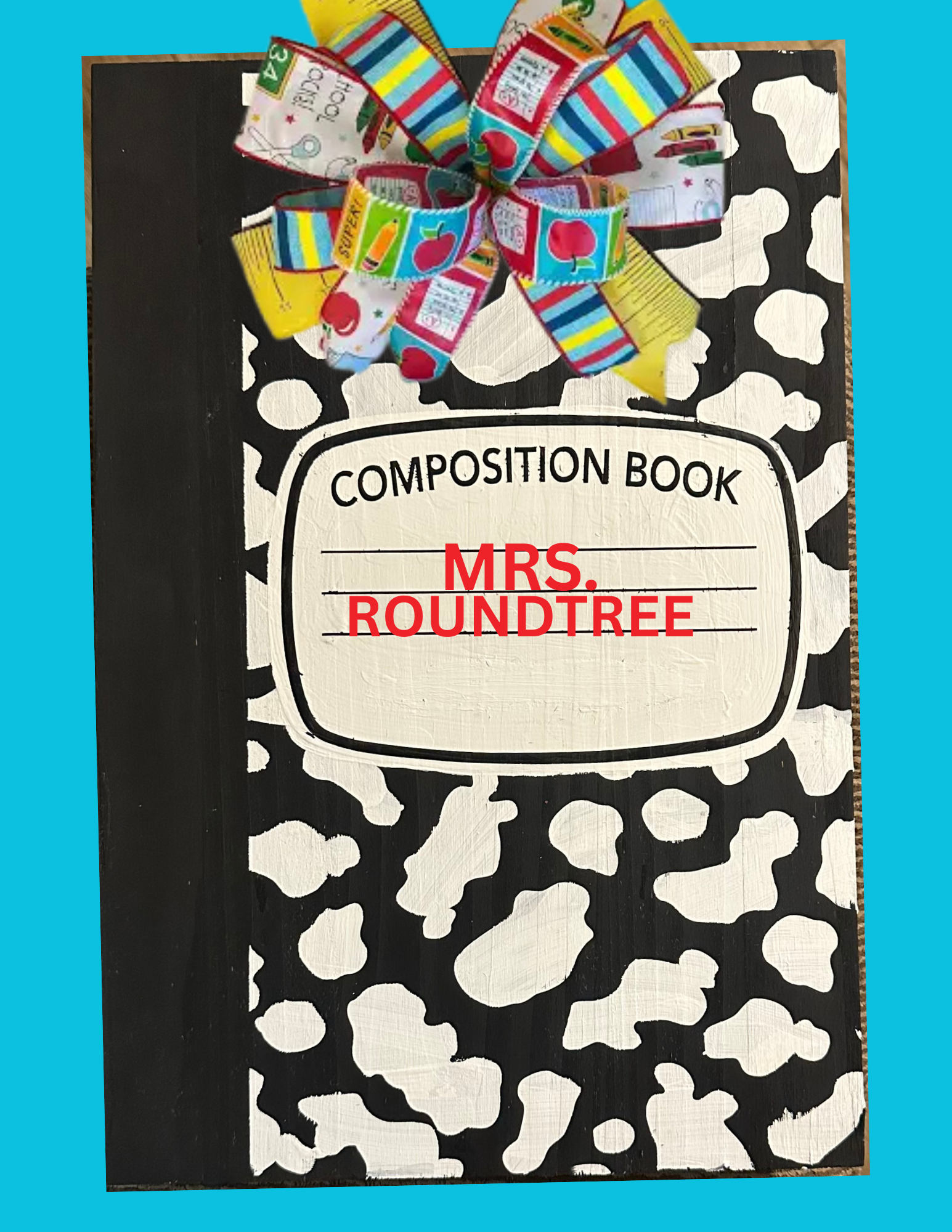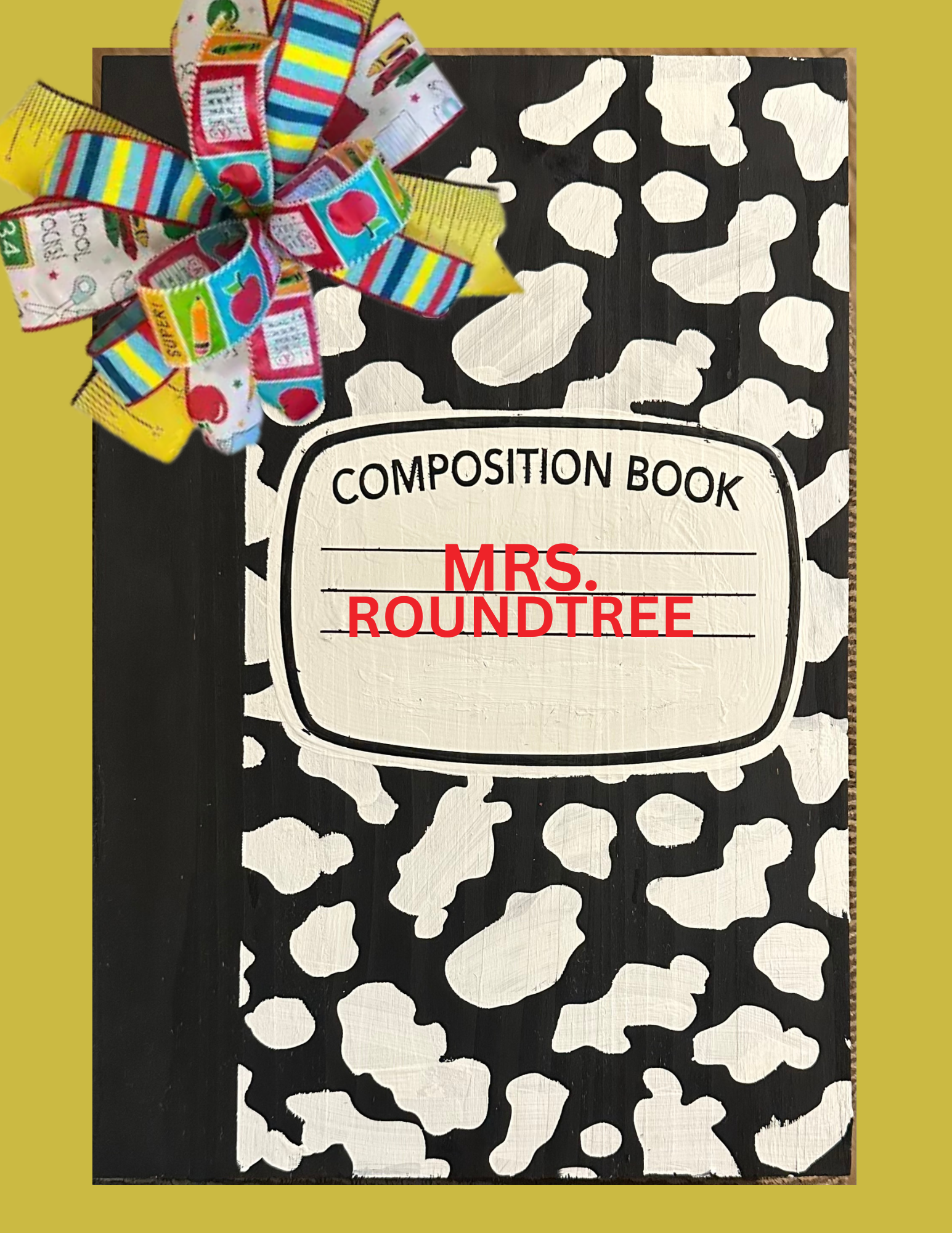 This 12x15 custom composition door hanger features a unique bow accent, with the bow style subject to slight variation. Personalize it by entering your name in the customization box to create a tailored welcome or statement piece. Crafted for a distinctive and personal touch, this door hanger adds charm and individuality to any entryway.